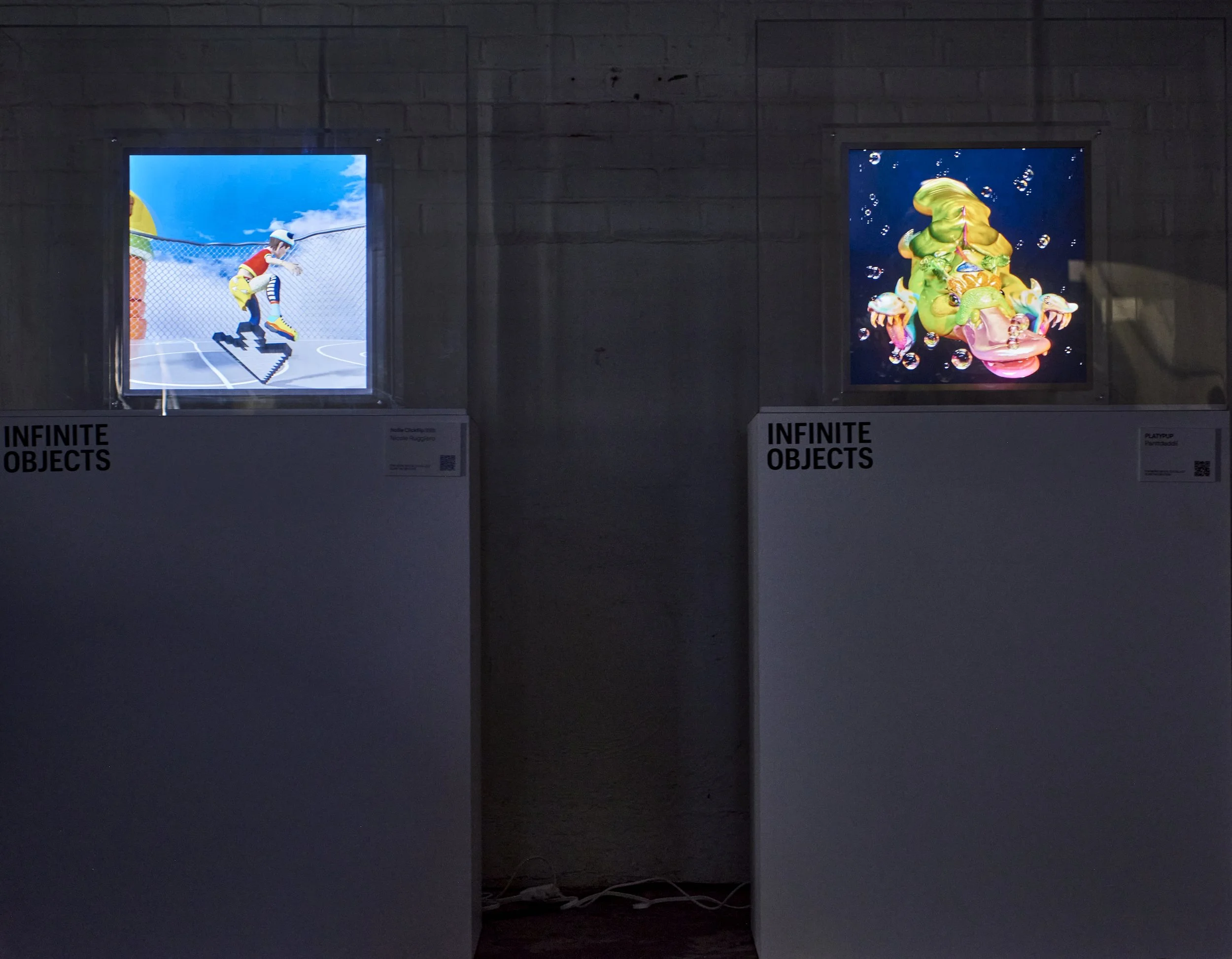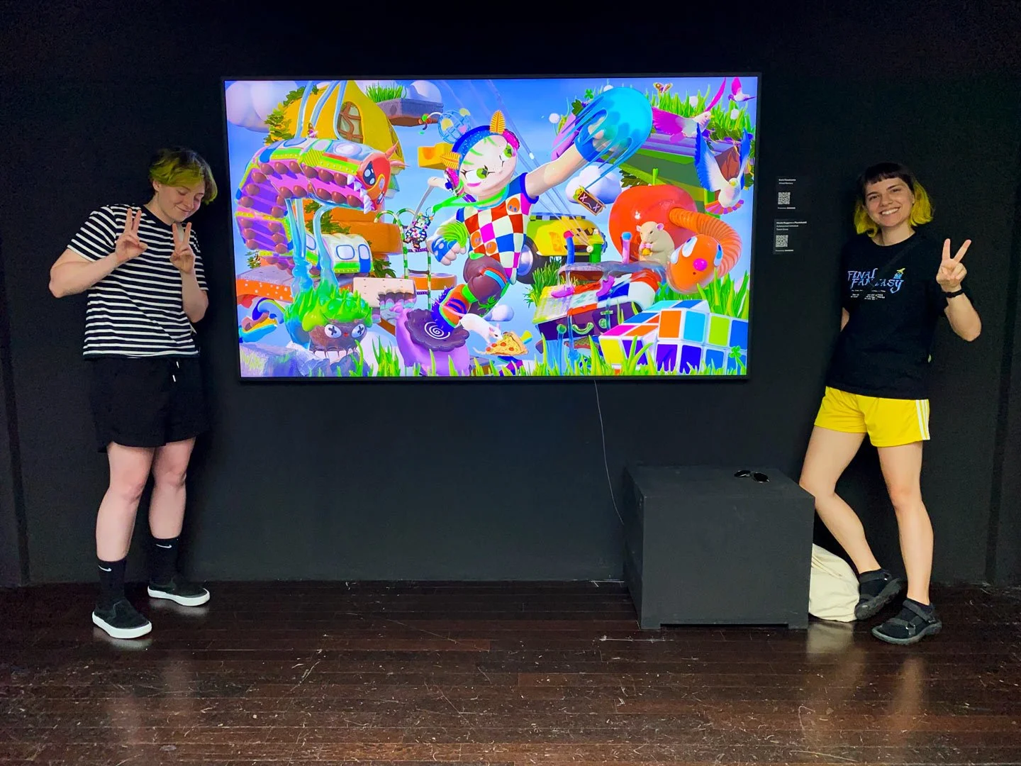 Growing up, video games were a big part of the way Nicole would spend her time. However, one thing always bugged her. The main characters of most of these games she grew up playing were male. She didnโt think much of it at first, until she started playing games that let the player choose the main characterโs name. She thought it was a bit weird that a male character would be named Nicole, but she went with it, suspending her disbelief. Ultimately, both stereotypical gender options didnโt really resonate with her. Being the tomboy that she was, she wanted to play as a character that felt more like her, more androgynous. For this piece, Nicole conceptualized a non-binary character named Fish who she later created with @planttdaddii (Sam Clover) that embodies a character she would have loved playing as growing up. The platform world Nicole and Sam created for Fish is based on NYC and was conceptualized by Sam. Recently, Sam moved from Seattle to New York. She chose a NYC-style platformer world because she felt it would be a perfect way to express how chaotic it is to live in New York, and thought it would make a great world for a character to fight baddies within. The world also reflects the little things that bring Sam joy and help her overcome daily stressors. Fish battles enemies in this NYC-themed world, jumping from platform to platform, proud to be facing these challenges as a hero, living life true to themself.