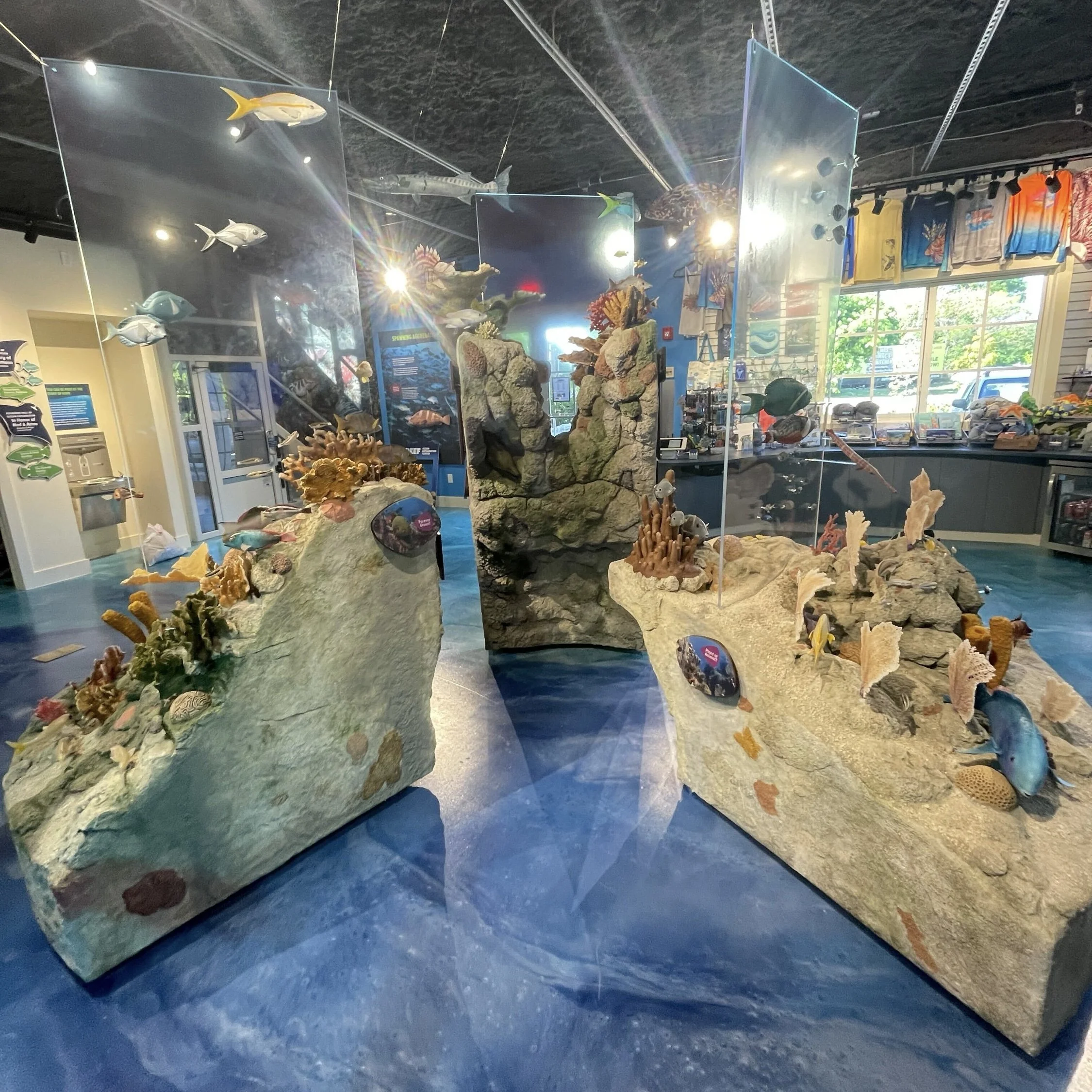 Below show the new exploration center, some of the digital sculpts, fabrication process. Some if the fish had many different poses, and life phases. i.e. having their fins flared or relaxed, various swimming positions, or being in the initial or terminal life stage.