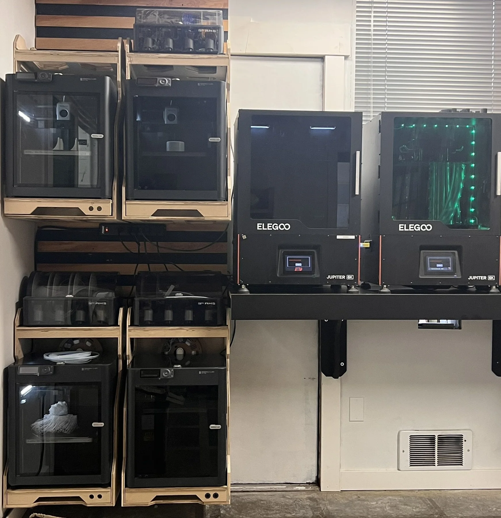 some of the 3D print farm at Intention space